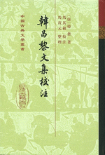 数多くの韓愈文集の中、桐城派文人馬其昶(1855-1930)が、明清の未公刊の抄本や手稿を含む様々な韓愈文集の版本を参照し、文字訓詁・名物制度・史実疏証などの面から韓愈のすべての文章に校正・標点・勘誤を加え、古典文学研究家馬茂元(1918-1989)の整理をも経た本書は、最も優れたものとして高く評価されている。「文集」(8巻)、「文外集」(2巻)、「遺文」(1巻)、「集伝」(1巻)、「附録:集外文」(3篇)から構成。『中国古典文学叢書』の1点。
