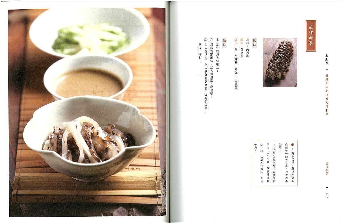 目录: 序一 复旧见深意 代序二 器皿之美 自序 我也来泼一瓢冷水 01.凉拌海参 02.炒咸什 03.梅花(大乌)参嵌肉 04.清蒸干贝 05.虾片炒嫩豌豆 06.锅比目鱼 07.烧鸭丝炒蜇皮 08.红烧鸽蛋 09.糟蒸鹅(鸭)肝 10.(雉)鸡丁炒酱瓜 11.烩两鸡丝清油饼 12.锅烧鸡 13.溜黄菜 14.银丝牛肉 15.桂花皮炸 16.炸响铃双汁 17.核桃腰 18.罗汉豆腐 19.炉肉丸子火锅 20.烩三丁 21.烩乌鱼钱带割雏儿 22.汆大甲 23.茉莉竹荪汤 24.黄鱼面 25.藤萝饼 26.奶油栗子面儿 跋 参考资料 器皿索引