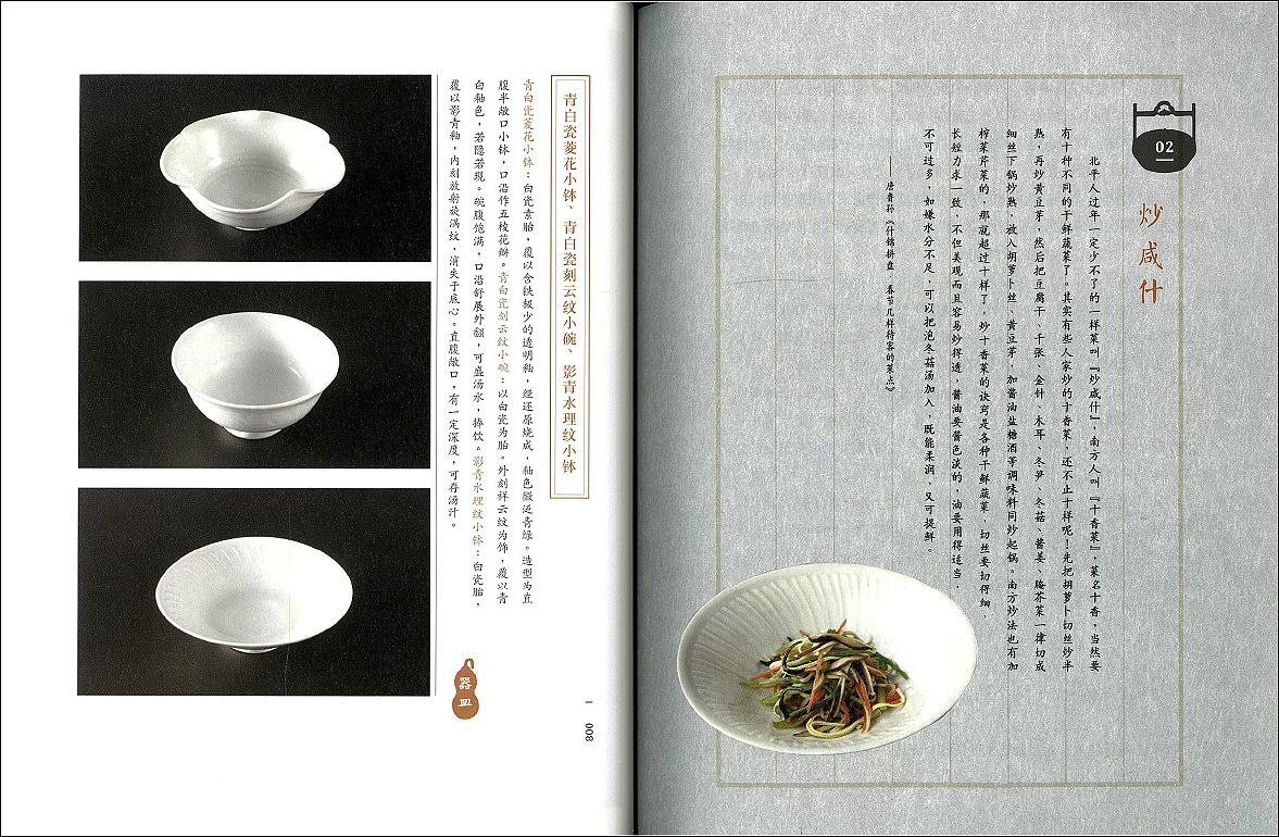 20世紀中国の文学者で、ともに美食家として知られる梁実秋と唐魯孫。二人の食に関するエッセイ、文章から厳選された26品のメニューを、北京の名店「御珍舫」総料理長・張少剛氏が完全再現、詳細なレシピを紹介する。すべての再現された料理は、気鋭の陶芸家・高振宇が制作した器とともに掲載され、どのページを開いても、視覚と味覚を刺激する一冊となっている。