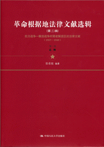 本書は抗日戦争時期における六つの抗日根拠地(陝甘寧辺区・晋綏辺区・晋察冀辺区・晋冀魯豫辺区・山東省・華中区)において作成された法律関連文献を収録する。これらの根拠地は解放戦争時期においても継続して同様の法律文献を施行し、状況に応じて改定等をおこなった。