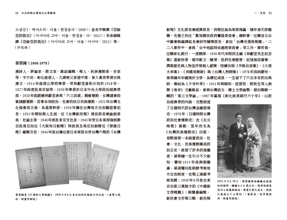 本辭典以日治時期台灣新文學為主要對象,旁及民間文學、戲劇、流行歌等。從作家、作品、媒介、思潮與運動四大範疇,揭示台灣的文藝運動,以及台灣作家在日本、中國、「滿洲國」的刊載、出版、轉載、翻譯情形。它在《東亞殖民主義文學辭典.台灣篇》的基礎上擴充,耗時多年,集結128位學人投入撰寫,總計完成411個辭目,28萬餘字釋文,206張圖片,18,000字圖說。這是一部工具書,也是台灣文學專業知識的入口。它不只反映台灣文學學科三十多年來積累的成果,也表現出這個學門銳意向東亞相關議題進行比較和接軌的突破。本書編纂方式兼顧讓外國人及一般讀者易於入門,讓國內外專家便於精進等不同需求,具有新條目、新作者、新詮釋、新出土、新研究、體例統一等優點。我們尤其重視跨境/跨語/跨民族之間的文藝交流與文化互涉現象,衷心期盼這部辭典能在東亞現代文學交流和殖民主義反思方面提供助益。
