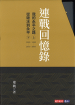 《連戰回憶錄》堅持和平 走向雙贏寫作歷時15年,45萬字,收錄超過120幀重要里程碑照片精緻軟皮裝幀,特製精美典藏書盒◆第一手還原連胡會、連習會歷史現場◆收錄破冰之旅北大演講等重要演講全文◆「三一九選前之夜」預備講稿首度公開◆連主席對兩岸關係的最新見解寫作逾十五年,前副總統連戰詳述人生閱歷及從政經驗的卓越巨著,滿載其心繫兩岸和平數十載的理想與熱情。上下兩部,全書45萬字,收錄超過120張珍貴圖片。上冊自1936年連戰於中國西安市出生起始,一路描述其動盪不安、漂泊於兩岸間的成長過程,直至生根台灣,進入台灣大學專研政治專業,漂洋過海前往美國芝加哥負笈求學的漫長歲月。1975年,青年連戰獲得蔣經國先生賞識,初入政壇即展露過人能力,一路出任交通部長、外交部長、台灣省省主席、行政院長等要職,並與李登輝攜手高票當選中華民國首屆民選正副總統。在這部鴻章鉅字的作品中,連戰為自己豐富的公職生涯以及追求兩岸互助共榮的努力,留下了詳實的紀錄,不僅是兩岸三地的珍貴資產,更是中華民族歷史的雪泥鴻爪。