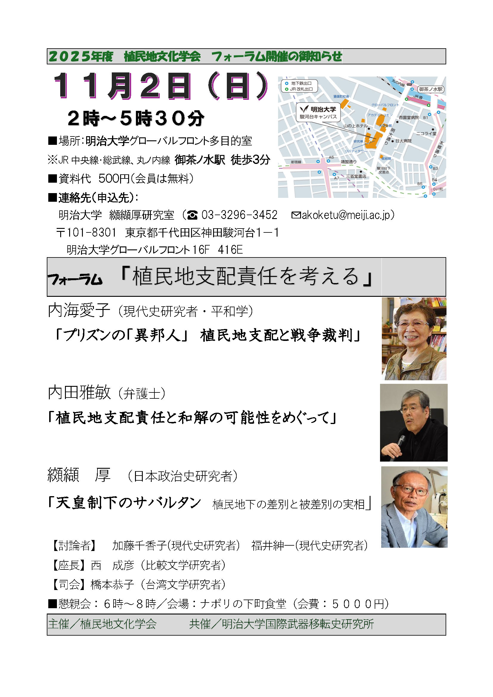 植民地文化学会 2025年度 総会・研究発表会・フォーラム「植民地支配責任を考える」