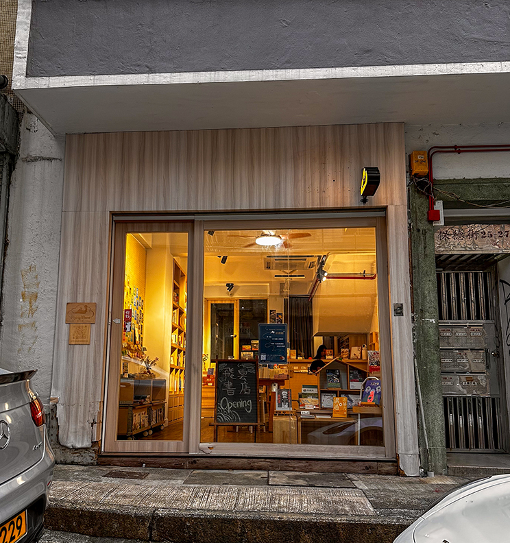 飛雲書店がある香港島の保徳街は2022年の「Hiding Place」取材時と変わりなく、静かな通りだった。昔ながらの自動車修理工場も残るが、新たなカフェが増えている。地下鉄の駅からこの書店に向かう道の上空には、S字を描く高い高架道路が走り、多くの人がその写真を撮っている。様々に変わり続ける香港の一角で、飛雲には変わらぬ初志を貫いてほしいと雲を見上げ、願った。
