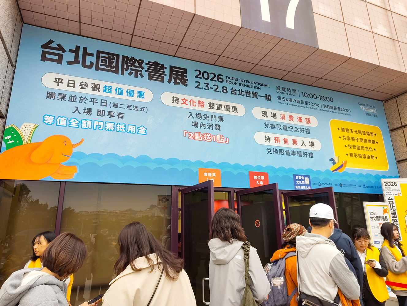 また台湾では、「文化幣」(カルチャー・ポイント)という電子マネーが政府から青少年に提供されており、年々その対象年齢は拡大しており、今年は13歳から22歳まで。1200台湾元(2026年2月下旬時点で1台湾元は約5円。1200元はおよそ6000円)相当のポイントが付与され、特定の文化的イベントや書籍購入にあてることができる。このブックフェアでもこのポイントが使えるということが強調されていた。また、このポイントの残額が100ポイント以上あれば、入場無料となる。