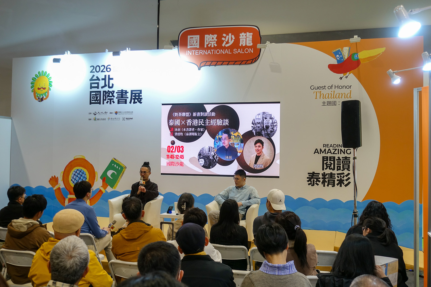 テーマ国のタイに関連したトークショー。登壇者は、歴史学者ジェフリー・ワッサーストロムが香港、台湾、タイなどの若者による民主化運動について著した『The Milk Tea Alliance: Inside Asia’s Struggle Against Autocracy and Beijing』(ミルクティー同盟)の中国語版翻訳者――台湾在住の香港人作家・沐羽氏とタイ語版の翻訳者・梁震牧氏。