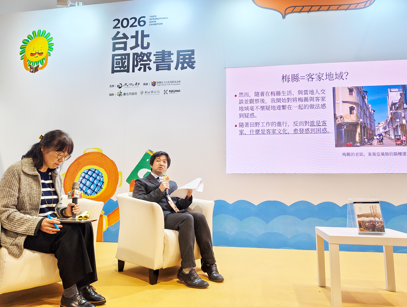 今回のブックフェアでは、客家研究の日本における第一人者、東京都立大学の河合洋尚准教授の講演があった。テーマは《「客家空間」的生產」》。これは河合氏の著書『〈客家空間〉の生産――梅県における「原郷」創出の民族誌』(風響社)の中国語版『「客家空間」的生產――梅縣「原鄉」創造之民族誌』(客家委員會客家文化發展中心と南天書局有限公司)の発刊を記念してのもの。