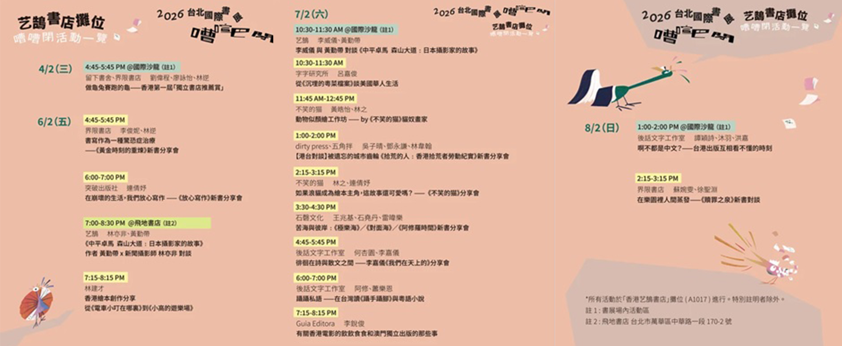 その「賑やかさ」という意味で、この艺鵠のブース内で多くのトークショーが開催された。このブースの他に、ブックフェア主催者が用意した「国際サロン」という会場でも“艺鵠主催”のイベントがいくつか行われた。以下に艺鵠のFacebookからイベントの一覧を。