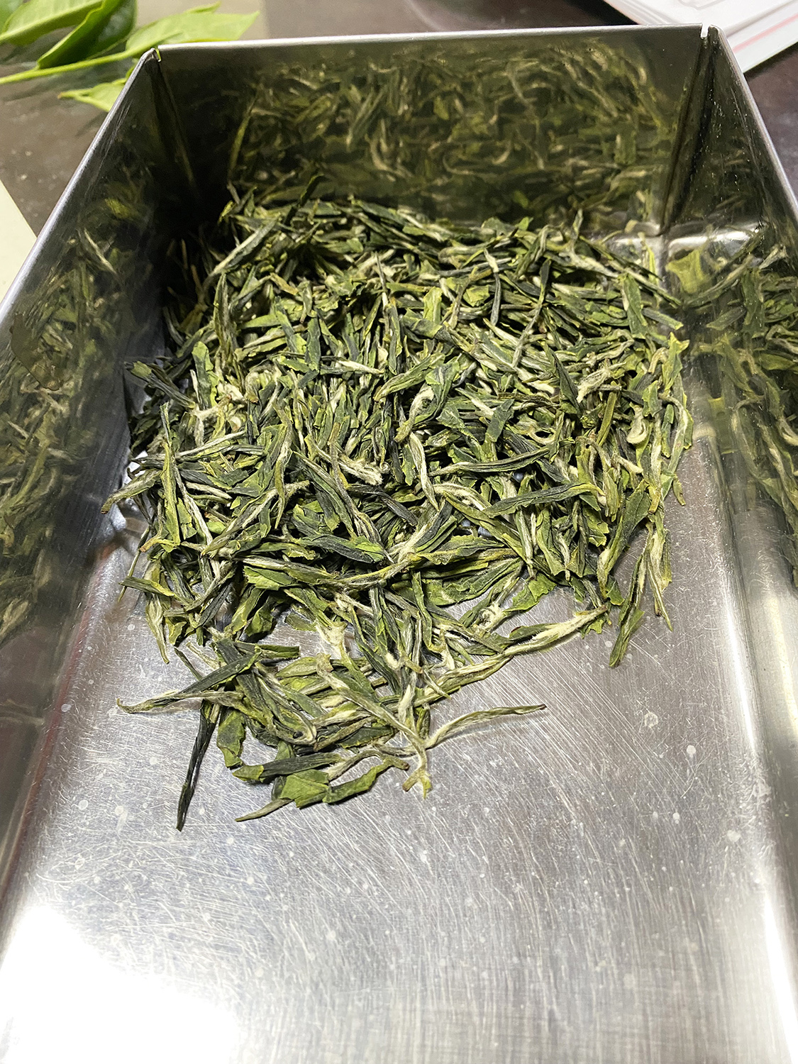 86歳になられたという黄さんは、以前三峡のお茶コンテストで何年も連続で一番を取り続けていたレジェンドだが、今でも製茶をしていると聞いて驚いた。そして家の入り口には、日本の手揉みで使うホイロ(焙炉)と呼ばれる製茶台に似たステンレス製の台があった。