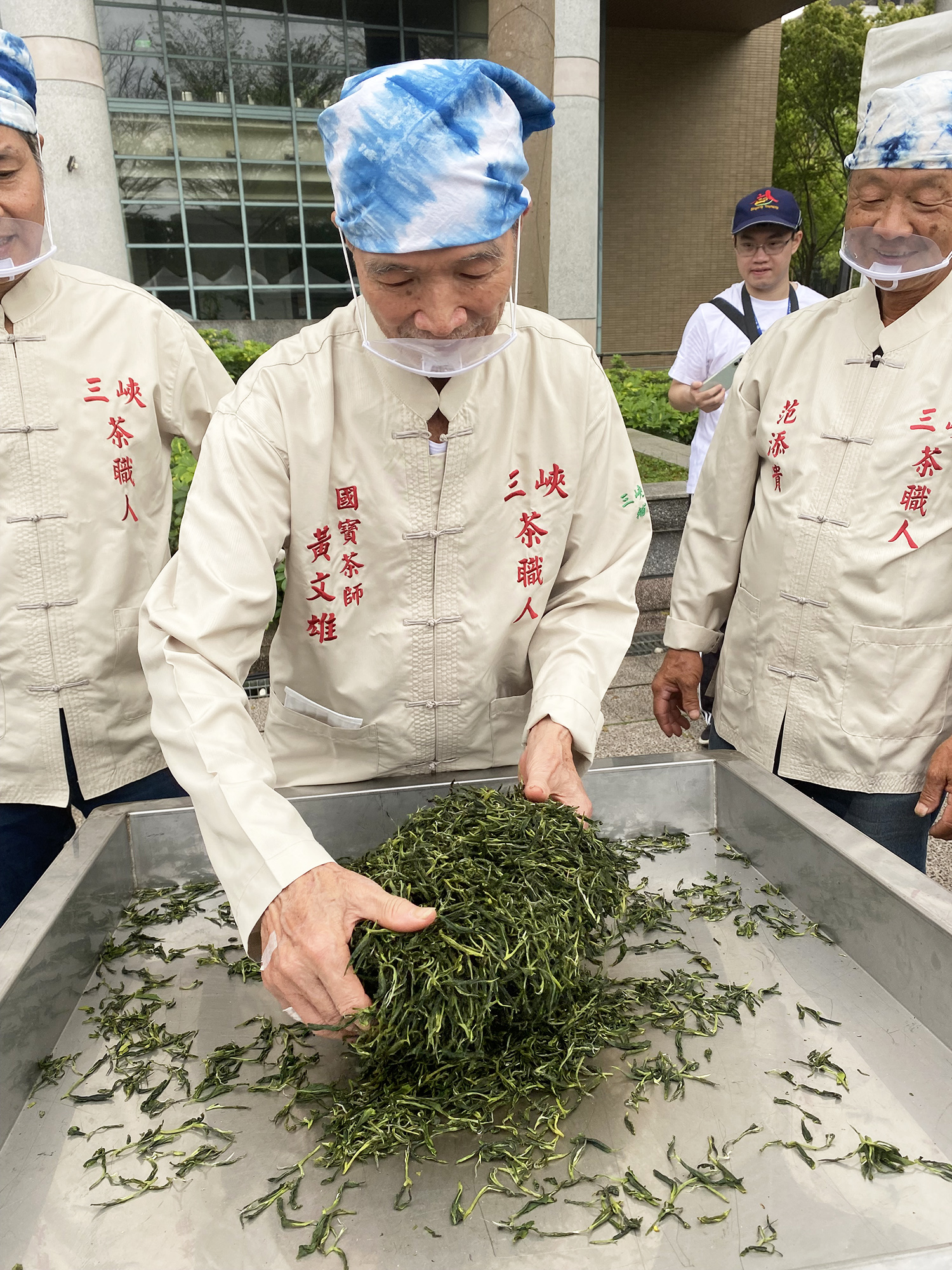 今回静岡で手揉み茶を勉強中の女性が台湾に来たので三峡に同行した。手揉み茶とは日本の伝統的な緑茶製法で、熟練の茶師が蒸した茶葉を数時間かけて手作業で揉み上げ、針のように細く仕上げる。機械化が著しい今、時間と労力をかけて作る茶はコストが合わず途絶えていく方向にあるが、寧ろ伝統工芸として、日本全国に手揉み茶保存会があり、毎年コンテストも行われている。台湾茶業者や茶愛好者の中にも手揉みに興味を持つ人々が出て、静岡に研修に行ったり、年1回台北で開かれる南港茶展に静岡から手揉み者が参加して人気を集めている。