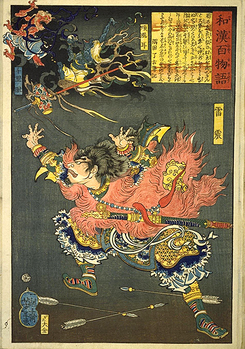 それより、私の関心はこの浮世絵に登場している三者の図像の元になった図書資料が何だったかなのだが、この探究はなかなか手ごわそうだ。